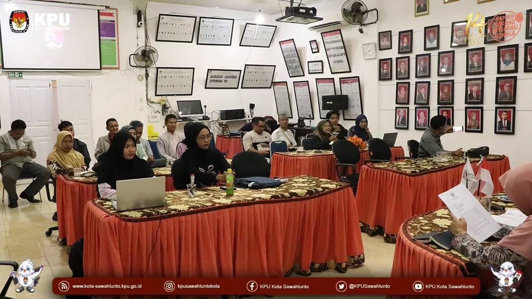 Sawahlunto, kota-sawahlunto.kpu.go.id - Jum'at (19/5) KPU Kota Sawahlunto melaksanakan Rapat Koordinasi Penyusunan Daftar Pemilih Hasil Perbaikan Sementara (DPSHP) Akhir dan Persiapan Daftar Pemilih Tetap (DPT) dengan Panitia Pemilihan Kecamatan Se Kota Sawahlunto. Rakor ini dihadiri oleh Bawaslu, Komisioner, Sekretaris, Kasubbag dan Staf Sekretariat. Kegiatan berlangsung pada pukul 14.00 Wib di Ruang Rapat KPU Kota Sawahlunto.