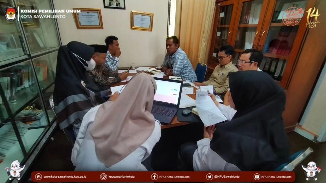 Kegiatan ini berlangsung di ruang Ketua KPU Kota Sawahlunto yang dihadiri oleh Komisioner, Sekretaris, Kasubbag dan Staf terkait.