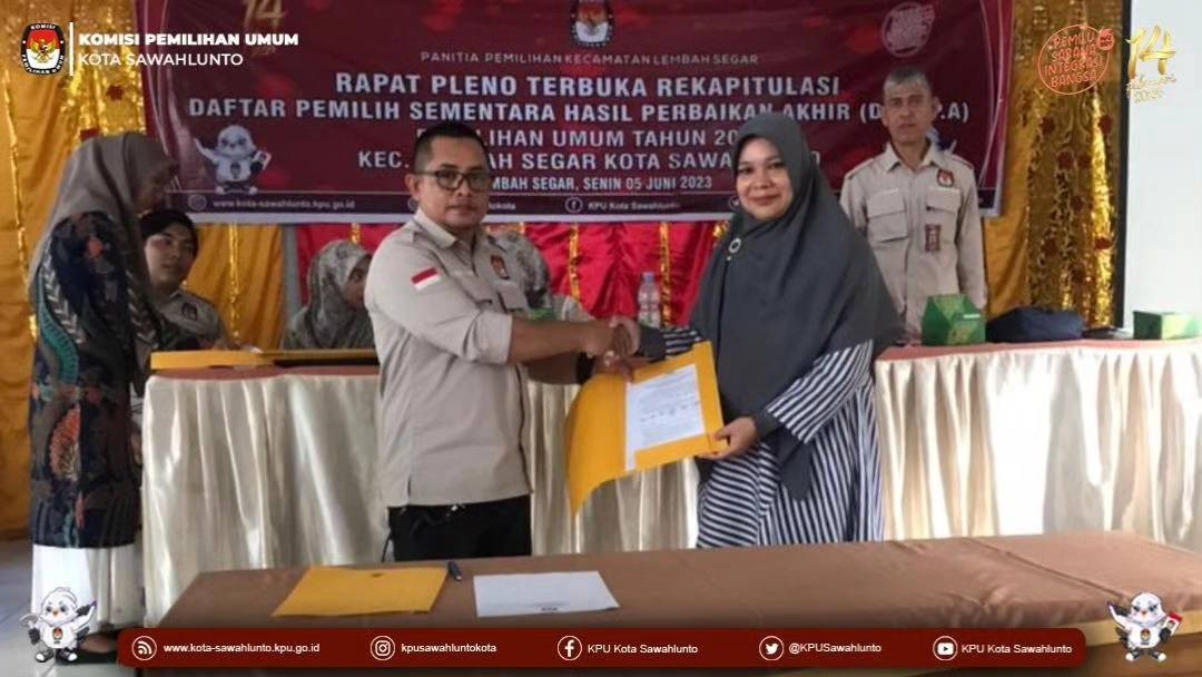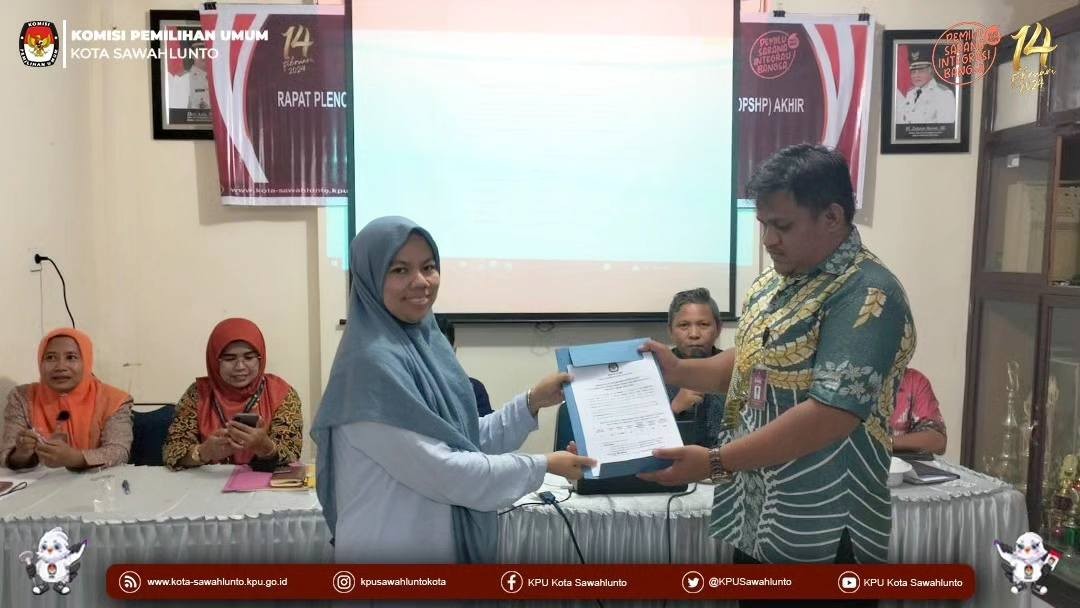 Dalam rapat pleno ini di sampaikan hasil Rekapitulasi dan Penetapan Daftar Pemilih Sementara Hasil Perbaikan (DPSHP) Akhir mengenai rincian perubahan data seperti warga yang belum terdata, pindah, maupun meninggal yang selanjutnya dilakukan Penandatanganan Berita Acara Rekapitulasi DPSH Akhir oleh Ketua dan Anggota PPK. Acara diakhiri dengan Penyerahan Berita Acara kepada KPU Kota Sawahlunto, Perwakilan Partai Politik, Pihak Kecamatan dan Panwascam.