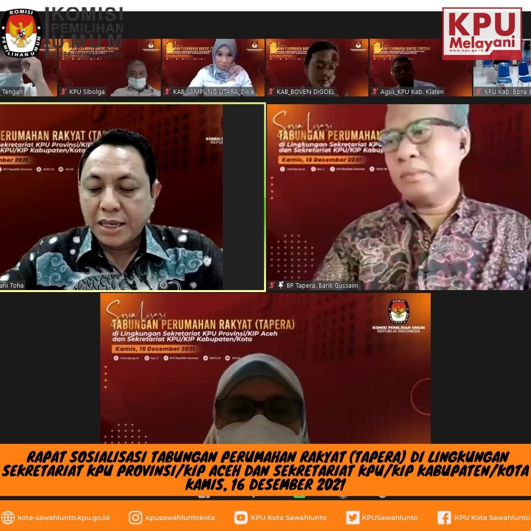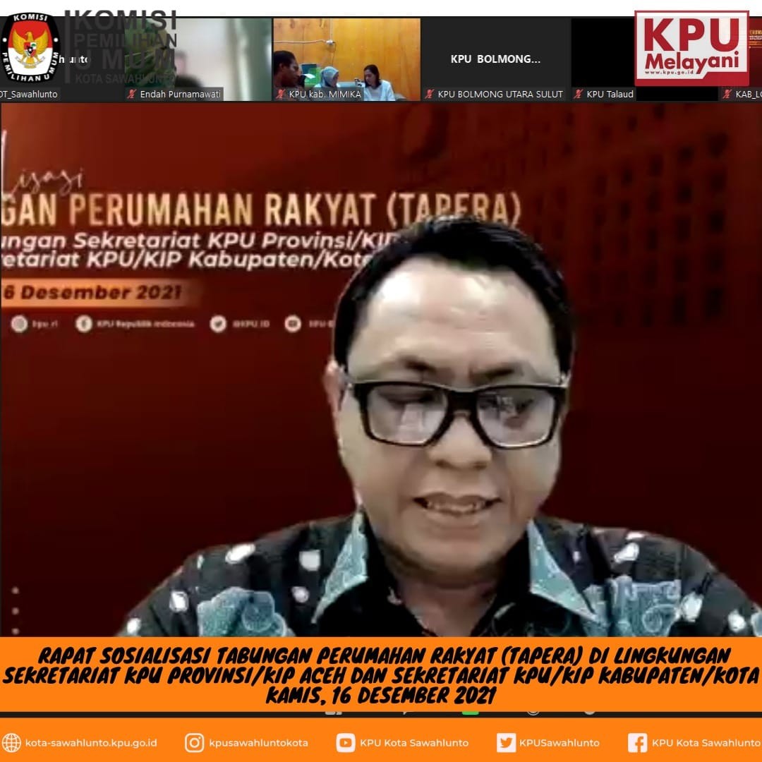 Sawahlunto, kota-sawahlunto.kpu.go.id – Hari Kamis (16/12) KPU Kota Sawahlunto mengikuti Webinar Sosialisasi Tabungan Perumahan Rakyat (Tapera) Di Lingkungan Sekretariat KPU Provinsi/KPI Aceh dan Sekretariat KPU/KIP Kabupaten/Kota. Kegiatan ini diikuti oleh seluruh jajaran Sekretariat KPU Kota Sawahlunto.