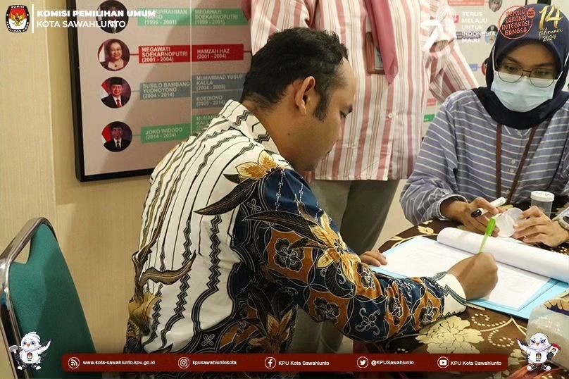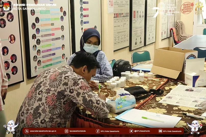 Setelah segala perlengkapan disediakan, pegawai KPU dipanggil satu persatu untuk dilakukan pengambilan urine dan daftar hadir. Setelah pengambilan urine selesai lebih kurang 30 menit pihak BNN menyampaikan pegawai KPU Kota Sawahlunto yang sudah melaksanakan tes urine semua hasilnya dinyatakan negatif.