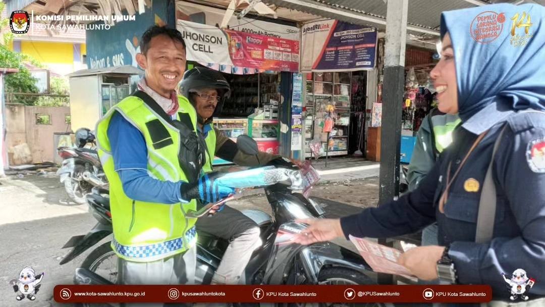 Sawahlunto, kota-sawahlunto.kpu.go.id - KPU Kota Sawahlunto melaksanakan Tour Democracy dengan mendatangi salah satu komunitas ojek yang ada di Kecamatan Barangin Kota Sawahlunto, Selasa (27/6). Hal ini dilakukan dalam rangka memaksimalkan penyampaian informasi tahapan Pemilu 2024.