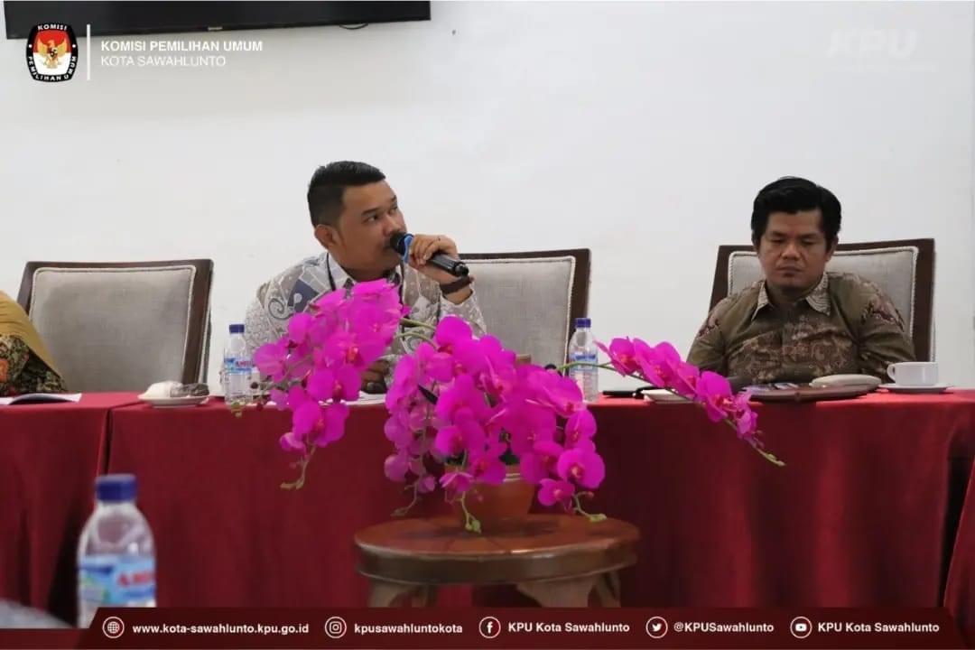 Acara dilanjutkan dengan penyampaian metode penataan dapil dan alokasi kursi oleh Divisi Teknis Penyelenggaraan Jasmadi. Dalam pemaparannya Jasmadi menyampaikan bahwa KPU Kota Sawahlunto mengusulkan 2 (dua) rancangan ke KPU RI. Penataan dapil ini meliputi beberapa prinsip, yakni kesetaraan nilai suara, ketaatan pada sistem pemilu yang proposional, integritas wilayah, berada dalam cakupan yang sama, kohesivitas, proporsionalitas dan kesinambungan.