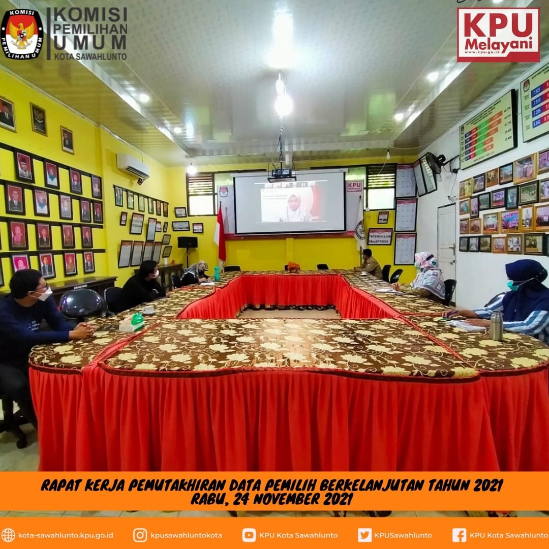 Sawahlunto, kota-sawahlunto.kpu.go.id – Rabu (24/11) KPU Kota Sawahlunto mengikuti Zoom Meeting Rapat Kerja Pemutakhiran Data Pemilih Berkelanjutan Tahun 2021. Rapat kerja diikuti dari Ruang Rapat KPU Kota Sawahlunto mulai pukul 09.00 WIB. Kegiatan ini diikuti oleh seluruh KPU Kabupaten/Kota Se-Sumatera Barat yang terdiri dari Ketua, Divisi Perencanaan Data, Sub Koordinator Perencanaan Data dan Informasi beserta staf.