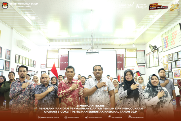 Sawahlunto, kota-sawahlunto.kpu.go.id - jelang pelaksanaan pencocokan dan penelitian Daftar Pemilih, KPU Kota Sawahlunto laksanakan Bimbingan Teknis Pemutakhiran Data Pemilih dan Penggunaan Aplikasi E-Coklit kepada PPK se-Kota Sawahlunto, Kamis (20/6) di kantor KPU Kota Sawahlunto.
