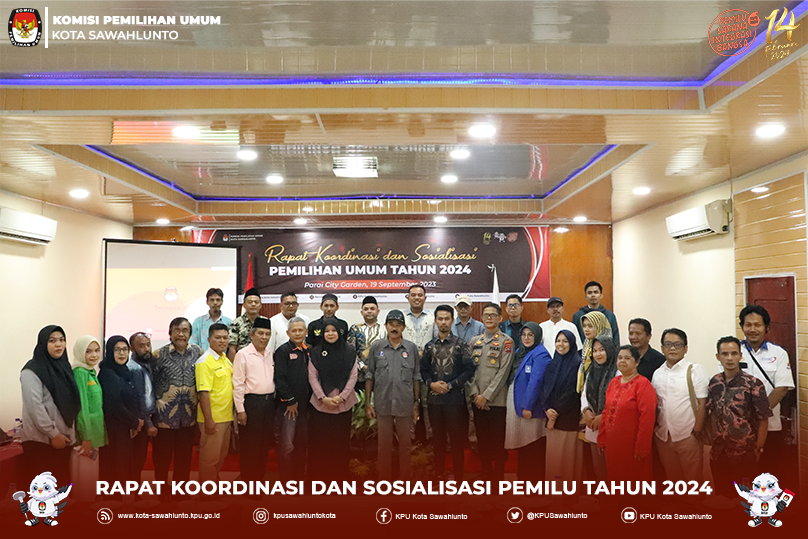 Sawahlunto, kota-sawahlunto.kpu.go.id - KPU Kota Sawahlunto, Selasa (19/9) melaksanakan Rapat Koordinasi dan Sosialisasi Pemilihan Umum Tahun 2024 di Parai city Garden. Kegiatan yang dimulai pada pukul 08.30 ini dihadiri oleh Kapolres Kota Sawahlunto, Bawaslu Kota Sawahlunto, Perwakilan Partai Politik dan LO serta Perwakilan Media/Pers.