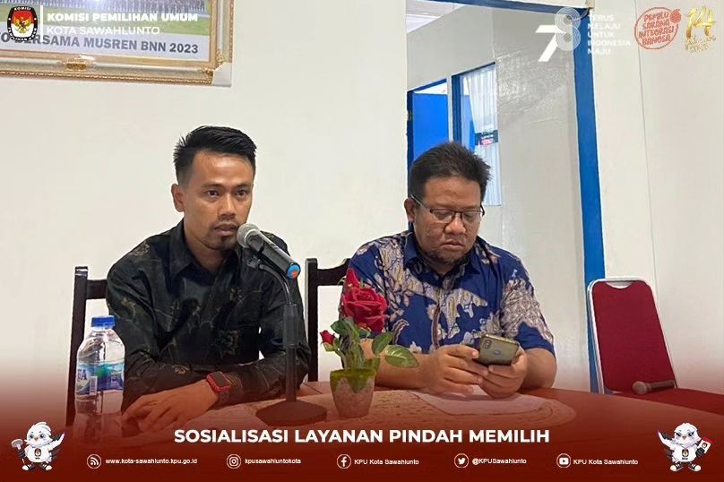 KPU Kota Sawahlunto mendatangi Badan Narkotika Nasional Kota Sawahlunto, Rumah Sakit Umum Daerah Kota Sawahlunto dan Badan Pertanahan Nasional Kota Sawahlunto guna menyampaikan sosialisasi Pemilu tahun 2024 kepada masyarakat bahwa akan memilih 5 surat suara yang terdiri dari Pemilihan Presiden dan Wakil Presiden, Anggota DPD, DPR, DPRD Provinsi dan DPRD Kabupaten/Kota. Untuk itu kepada pemilih yang sudah terdaftar dalam Daftar Pemilih Tetap (DPT) namun tidak dapat menggunakan haknya untuk memilih di TPS tempat bersangkutan terdaftar maka bisa menggunakan layanan pindah memilih yang sudah bisa diurus dari sekarang sampai dengan H-30 (15 Januari 2024) dengan 9 kriteria dan H-30 sampai dengan H-7 (7 Februari 2024) dengan 4 kriteria.