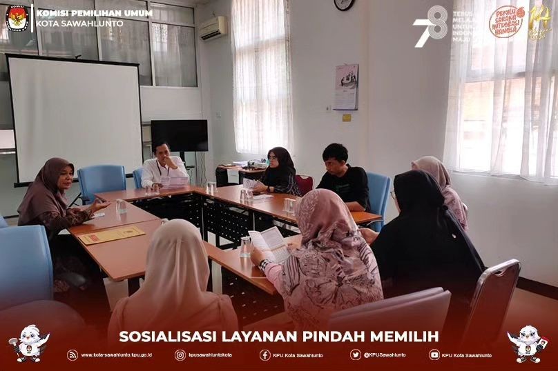 Sawahlunto, kota-sawahlunto.kpu.go.id - Selasa (29/8) KPU Kota Sawahlunto terus gencarkan sosialisasi layanan pindah memilih kepada instansi/lembaga, BUMN/D, dan unsur lain yang dinilai perlu untuk didatangi langsung. Sosialiasi ini dilakukan oleh Komisioner, Sekretaris, Kasubbag dan Staf Sekretariat.