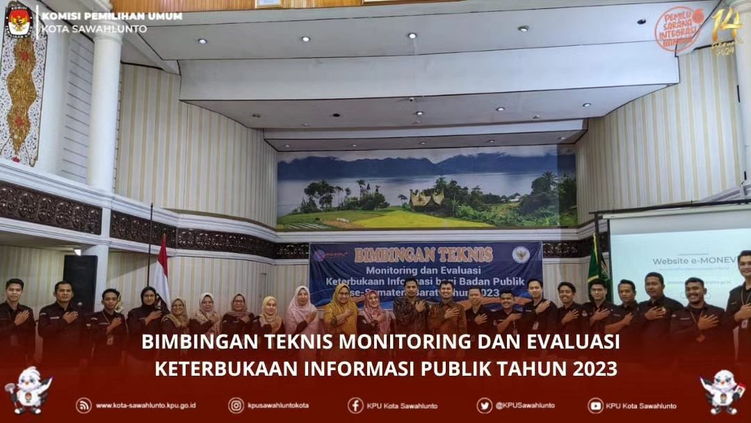 Sawahlunto, kota-sawahlunto.kpu.go.id - KPU Kota Sawahlunto menghadiri Undangan Bimbingan Teknis Monitoring dan Evaluasi Keterbukaan Informasi Publik Tahun 2023, Rabu (23/8). Kegiatan ini dilaksanakan sesuai dengan Undang-Undang Nomor 14 Tahun 2008 tentang Keterbukaan Informasi Publik dan Peraturan Komisi Informasi Nomor 1 Tahun 2022 tentang Monitoring dan Evaluasi Keterbukaan Informasi Publik. Acara berlangsung di Aula Kantor Gubernur Provinsi Sumatera Barat pada pukul 07.30 Wib. KPU Kota Sawahlunto diwakili oleh Frisky Tria Sapta selaku Staf Sekretariat Sub Bagian Teknis Penyelenggaraan Pemilu dan Partisipasi Hubungan Masyarakat. Keterbukaan informasi publik sangat diperlukan dalam penguatan pelayanan publik. Untuk itu sebagai penyelenggara pelayanan publik terus mendorong masyarakat untuk secara terbuka mengakses informasi melalui media yang ada. Melalui keterbukaan informasi publik masyarakat juga dapat memberikan saran dan masukan agar pelayanan informasi semakin lebih baik. Hadir narasumber pada kegiatan ini Tanti Endang Lestari dengan materi Tahapan Pelaksanaan Monitoring dan Evaluasi Keterbukaan Informasi Bagi Badan Publik, dan narasumber kedua Anggi Pratama dengan materi Teknis Pengisisan Kuisioner melalui Aplikasi E-Monev.