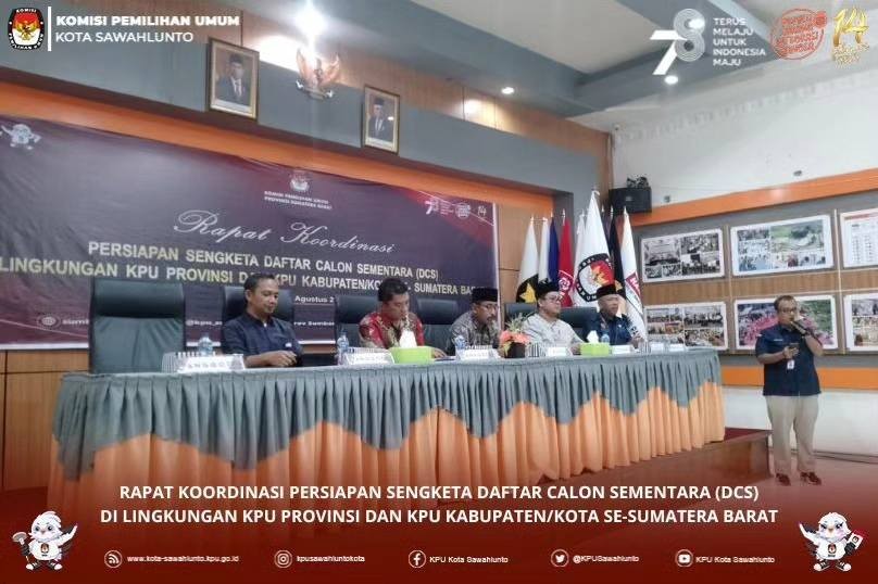 Sawahlunto, kota-sawahlunto.kpu.go.id - Selasa (15/8) KPU Kota Sawahlunto mengikuti Rapat Koordinasi Persiapan Kampanye dan Evaluasi Kegiatan Sosdiklih dan Parmas yang diselenggarakan oleh KPU Provinsi Sumatera Barat dengan KPU Kabupaten/Kota se Sumatera Barat.