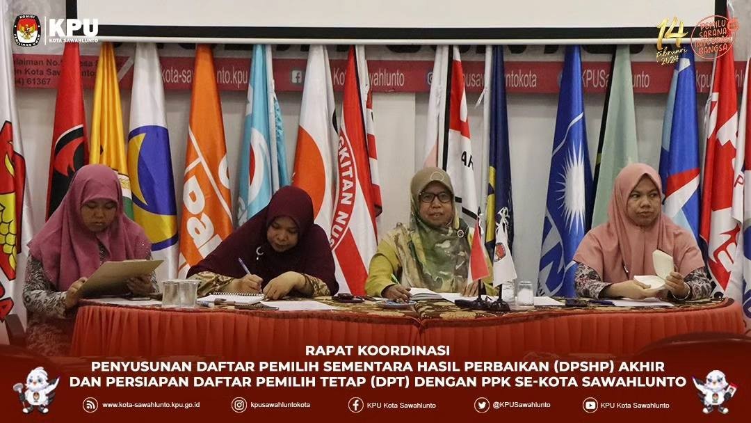 Sawahlunto, kota-sawahlunto.kpu.go.id - Jum'at (19/5) KPU Kota Sawahlunto melaksanakan Rapat Koordinasi Penyusunan Daftar Pemilih Hasil Perbaikan Sementara (DPSHP) Akhir dan Persiapan Daftar Pemilih Tetap (DPT) dengan Panitia Pemilihan Kecamatan Se Kota Sawahlunto. Rakor ini dihadiri oleh Bawaslu, Komisioner, Sekretaris, Kasubbag dan Staf Sekretariat. Kegiatan berlangsung pada pukul 14.00 Wib di Ruang Rapat KPU Kota Sawahlunto.