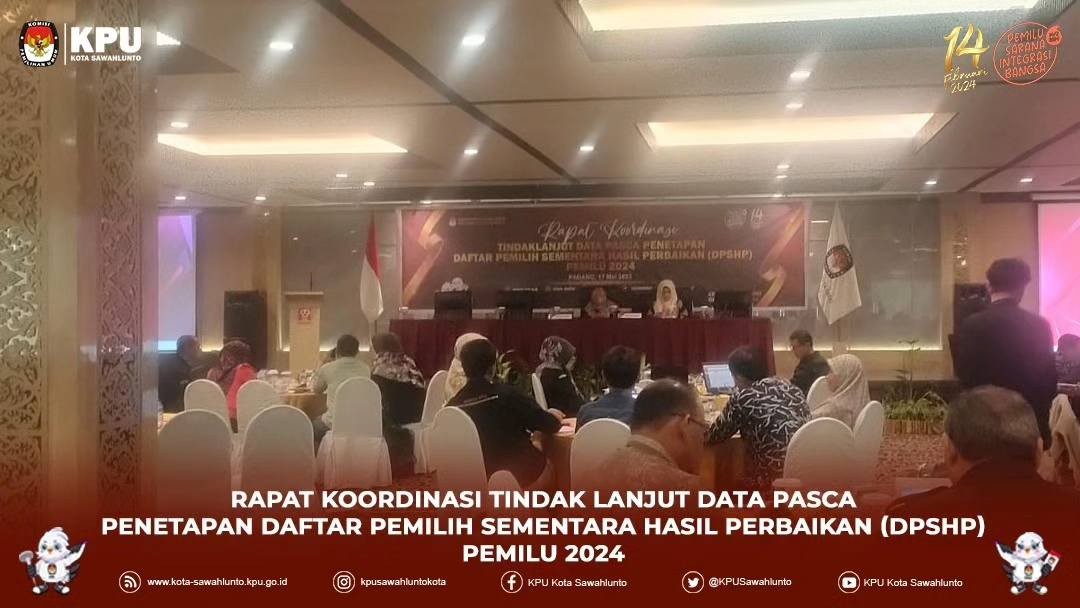 Sawahlunto, kota-sawahlunto.kpu.go.id - KPU Kota Sawahlunto mengikuti Rapat Koordinasi Tingkat Provinsi Pasca Penetapan Daftar Pemilih Sementara Hasil Perbaikan (DPSHP) Pemilu 2024, Rabu (17/5). Kegiatan ini bertempat di Hotel Pangeran Beach Padang yang diikuti oleh Rika Arnelia Divisi Perencanaan, Data dan Informasi serta Muhammad Ali Akbar sebagai Operator Sidalih. Yuzalmon selaku Divisi Perencanaan, Data dan Infomasi KPU Provinsi Sumatera Barat menyampaikan bahwa dalam tahapan DPSHP menuju DPT akan dilakukan pembersihan data invalid seperti usia dan data ganda. Untuk itu diperlukan masukan dan tanggapan dari masyarakat yang harus diperhatikan dan dimaksimalkan serta selalu melakukan koordinasi dengan Bawaslu dan instansi terkait lainnya. Hadir sebagai narasumber Nurhaida Yetti Anggota Bawaslu Provinsi Sumatera Barat. Salah satu permasalahan utama yang seringkali muncul dalam setiap penyelenggaraan pemilu adalah tahapan pemutakhiran data pemilih. Upaya pertama yang harus dilakukan adalah pencegahan yang dapat dilakukan dengan mengawasi pemutakhiran data pemilih. Apabila upaya pencegahan telah dilakukan seoptimal mungkin dan ternyata tetap terjadi pelanggaran maka Bawaslu sesuai dengan tugas dan kewenangannya harus menindaklanjuti pelanggaran tersebut.