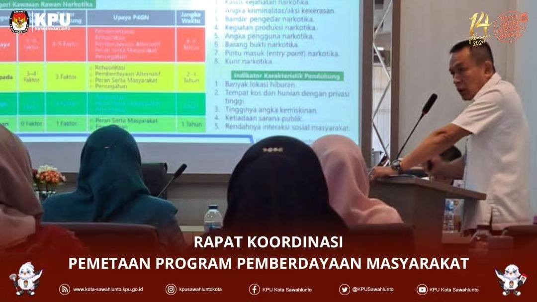 Sawahlunto, kota-sawahlunto.kpu.go.id - Kasubbag Keuangan, Umum dan Logostik KPU Kota Sawahlunto Puti Astri Primawardani mengikuti kegiatan Rapat Koordinasi Pemetaan Program Pemberdayaan Masyarakat yang diselenggarakan oleh Badan Narkotika Nasional (BNN), Rabu (10/5) yang bertempat di Savanah Guest House Meeting Room Sawahlunto, pukul 08.00 s.d selesai. Kegiatan ini juga dihadiri oleh Guru SD, SLTP dan SLTA Se Kota Sawahlunto serta Instansi Vertikal yang ada di Kota Sawahlunto.
