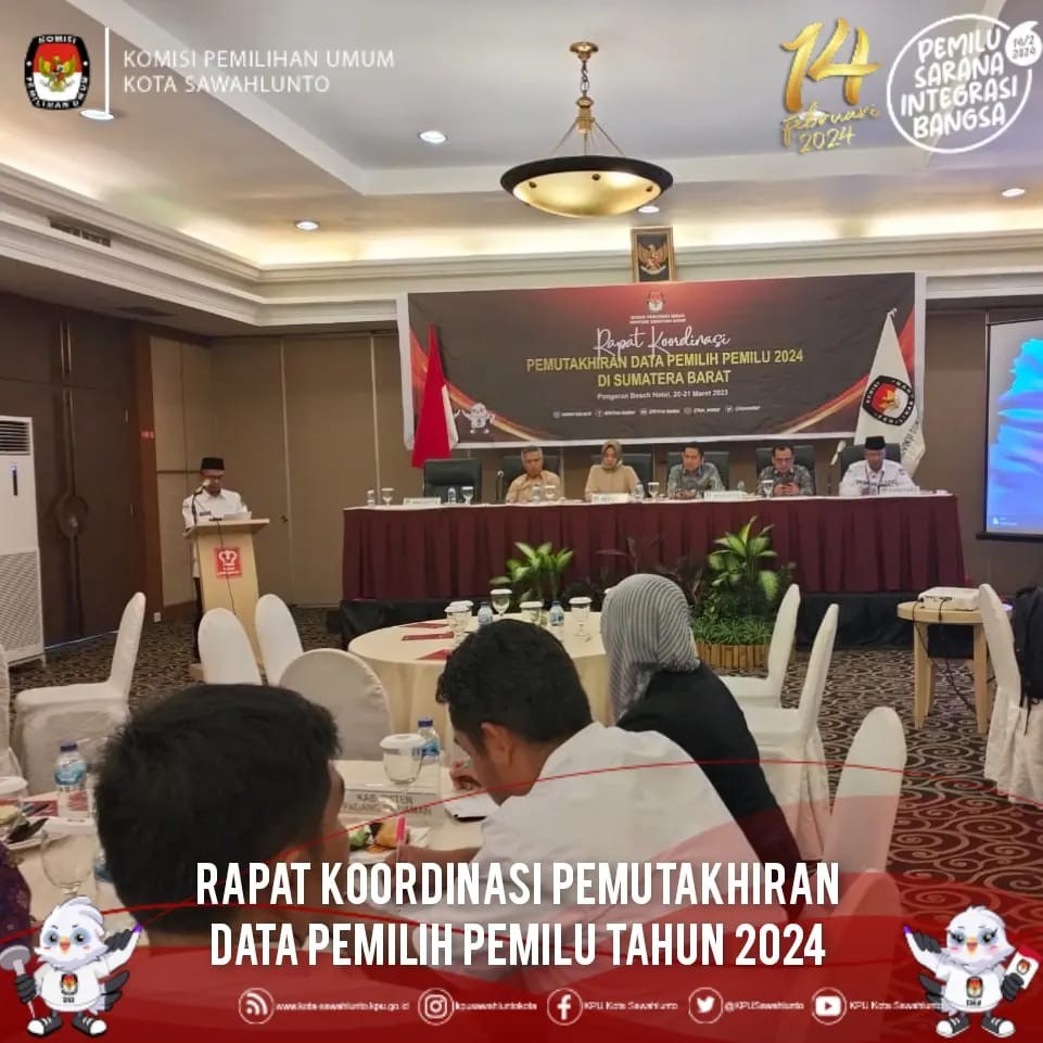 Sawahlunto, kota-sawahlunto.kpu.go.id - KPU Kota Sawahlunto menghadiri undangan Rapat Koordinasi Pemuktahiran Data Pemilih Pemilu 2024 yang dilaksanakan oleh KPU Provinsi Sumatera Barat. Rakor tersebut berlangsung pada tanggal 20 s.d 21 Maret 2023 di Hotel Pangeran Beach Padang. Kegiatan ini dihadiri oleh Divisi dan Kasubbag Perencanaan, Data dan Informasi beserta Admin/Operator KPU Kabupaten/Kota Se-Sumatera Barat.