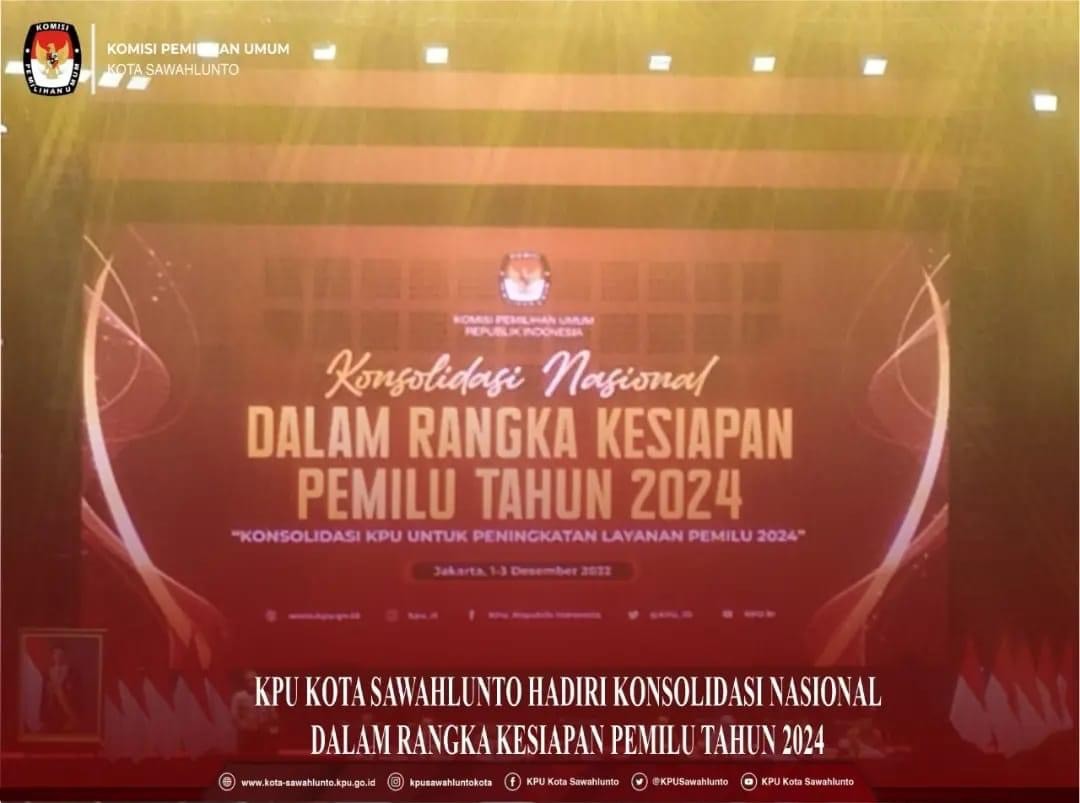 Sawahlunto, kota-sawahlunto.kpu.go.id - KPU Kota Sawahlunto mengikuti kegiatan Konsolidasi Nasional dalam rangka Kesiapan Pemilu Tahun 2024 dengan tema "Konsolidasi KPU untuk Peningkatan Layanan Pemilu 2024" pada tanggal 1 s.d 3 Desember 2022 bertempat di Jakarta.