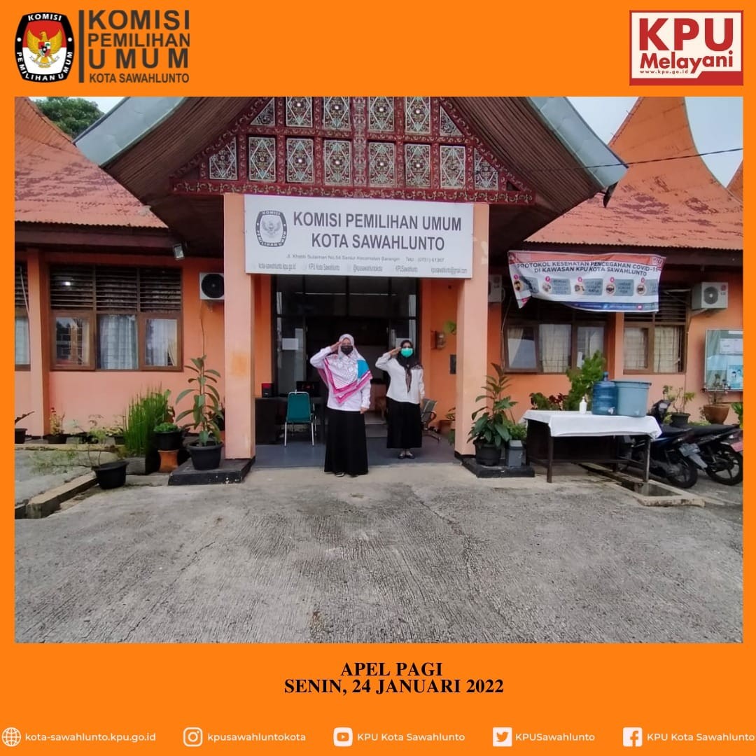Memasuki minggu Ke Empat di Bulan Januari 2022, KPU Kota Sawahlunto pada hari Senin (24/12) melaksanakan apel pagi yang diikuti oleh Komisioner dan Sekretariat yang bertugas hari ini, dengan tetap menerapkan protokol kesehatan.