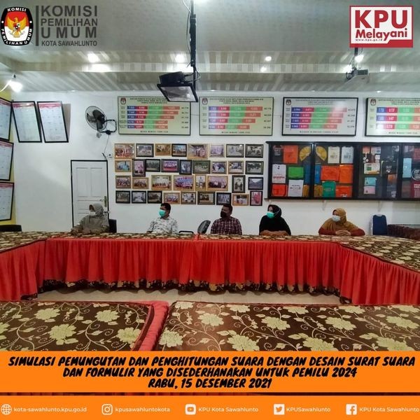 Kegiatan ini diikuti oleh Ketua KPU Kota Sawahlunto beserta Anggota dari ruang rapat Kantor KPU Kota Sawahlunto yang terbagi kedalam dua sesi, sesi pertama mulai pukul 08:30 WIB untuk simulasi pemungutan dan sesi kedua mulai pukul 13:30 WIB untuk simulasi penghitungan.